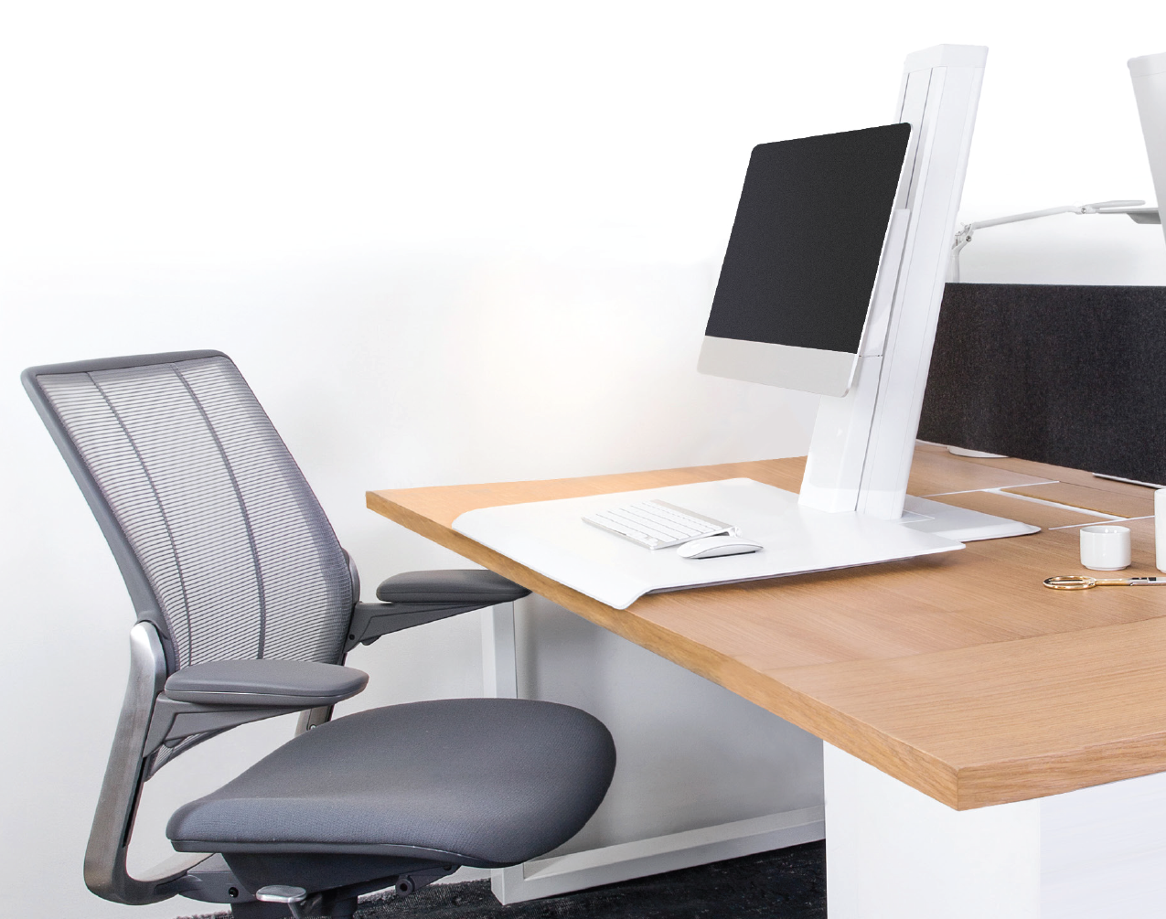 The quick stand easily modifies your desk work area into Sit Stand Solution. You can raise up the keyboard platform to a comfortable standing position.